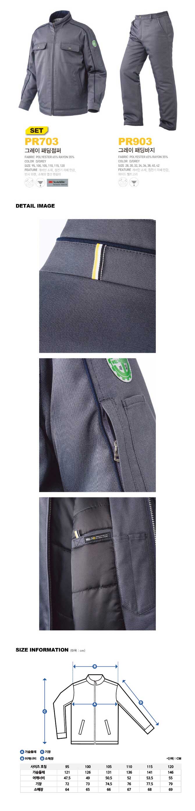 PR703/PR903(그레이 패딩 작업상하복, 윌비 근무복, 상하별도가능, 정비복)