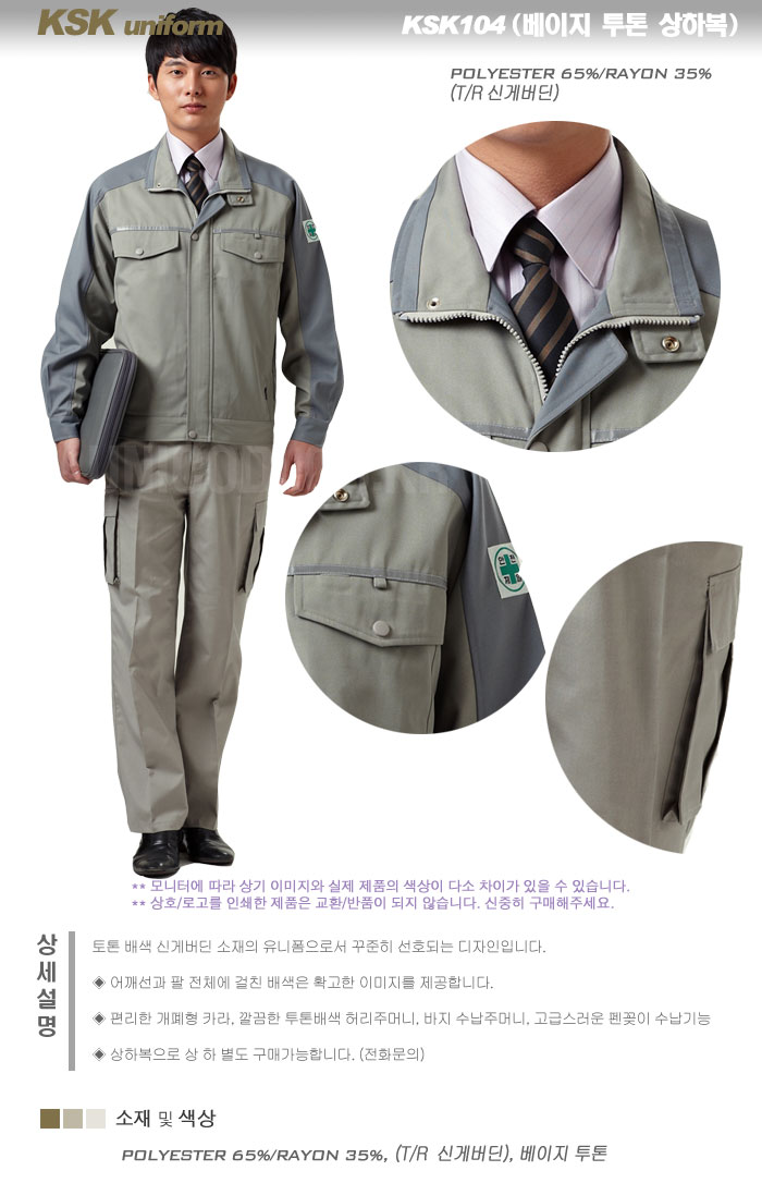 KSK104 (베이지 투톤 상하 작업복, 정비복, 상하별도가능, 무료자수)