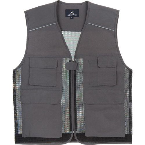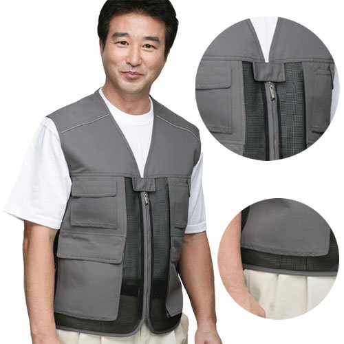 F A B R I CPolyester 100%C O L O R회색 (GRAY)S I Z EM / L / XL / 2XL / 3XL- 메쉬 원단의 비중을 높여 시원한 착용감이 특징- 가슴 반사 파이핑으로 야간에 식별이 좋음- 다양한 주머니로 넉넉한 수납공간