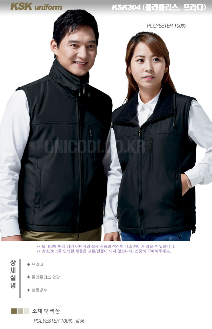 KSK304 (검정 PRADA, 폴라프리스 안감, 기모 방한 조끼, 경신 작업복)