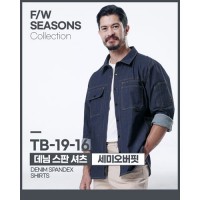 TB-19-16 (데님 스판 셔츠, 세미오버핏, 작업복 셔츠, 티뷰크)..