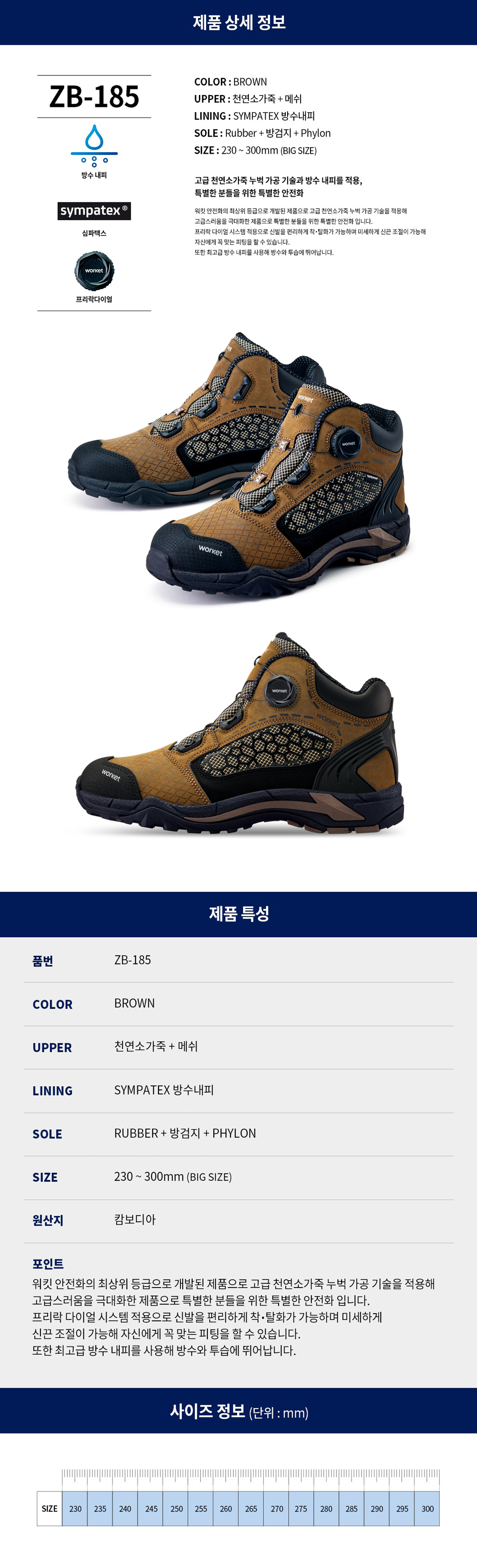 zb-185 (6인치 프리락 누벅 안전화, 방수 내피 작업화, 건설화)